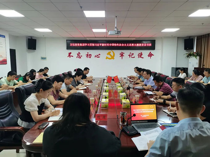 9月19日上午,萬寶投資集團舉辦學習貫徹習近平新時代中國特色社會主義思想主題教育讀書班,旨在進一步深入學習貫徹習近平總書記關于開展主題教育的重要講話精神,學深悟透習近平新時代中國特色社會主義思想,以讀書班帶動公司上下迅速興起學習的熱潮,推動公司主題教育見行于學、見效于干。黨委委員、紀委書記葛旭華主持并講話,黨委委員易志高以《習近平新時代中國特色社會主義思想是黨和國家必須長期堅持的指導思想》為題給大家上了一堂生動的黨課。公司主題教育領導小組全體成員,五位黨支部書記,全體部門、子公司負責人等參加。