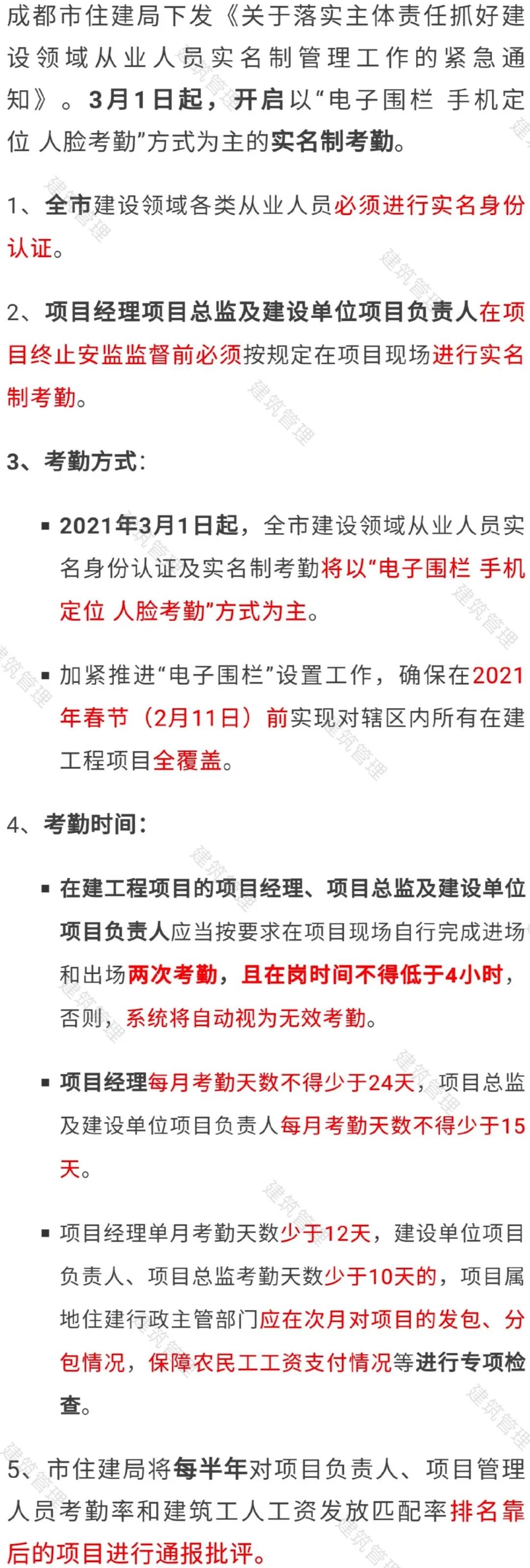 (四)關(guān)鍵崗位人員通過施工現(xiàn)場的“建筑工人實(shí)名制管理”考勤設(shè)備進(jìn)行人臉識別方式考勤。關(guān)鍵崗位人員考勤信息按月統(tǒng)計(jì),在系統(tǒng)留存時(shí)間至竣工驗(yàn)收后至少3年,作為企業(yè)信用評價(jià)和評優(yōu)評先的依據(jù)。