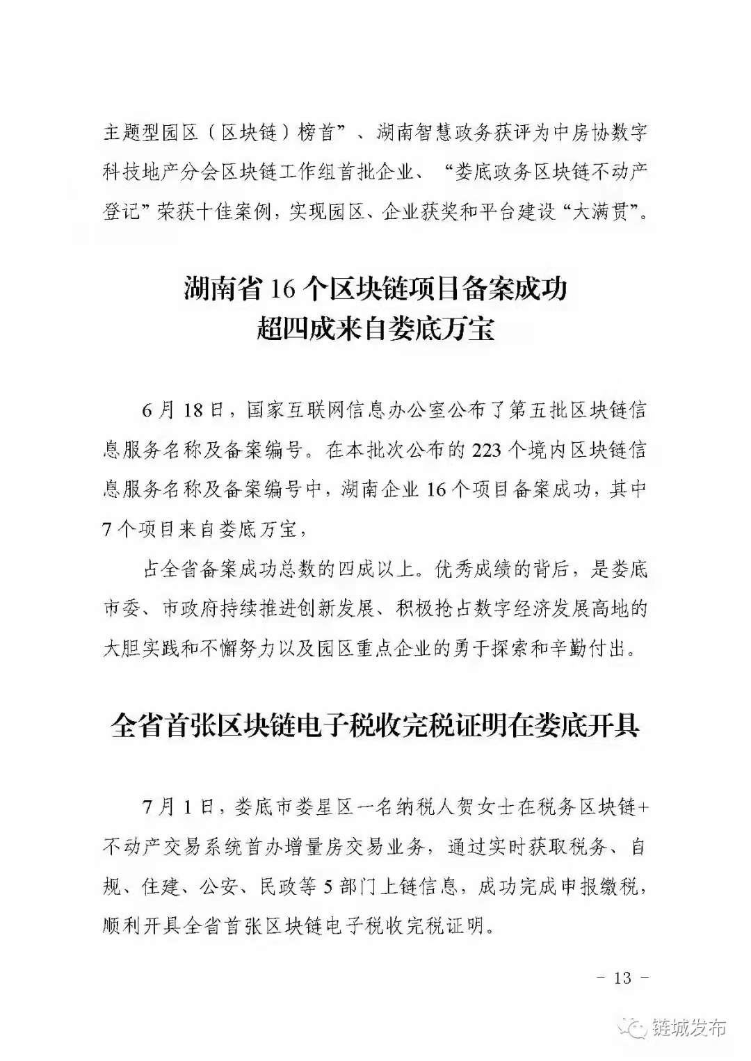 近年來,婁底市委、市政府高度重視區(qū)塊鏈技術(shù)產(chǎn)業(yè)的發(fā)展,積極擁抱區(qū)塊鏈,努力探索區(qū)塊鏈技術(shù)與實體經(jīng)濟的融合發(fā)展,走出了一條“以場景換產(chǎn)業(yè)”的獨特發(fā)展道路。經(jīng)過近幾年的發(fā)展,婁底市區(qū)塊鏈產(chǎn)業(yè)已初具規(guī)模,區(qū)塊鏈產(chǎn)業(yè)基礎(chǔ)不斷夯實、產(chǎn)業(yè)生態(tài)逐步完善,成功吸引了湖南智慧政務(wù)、湖南鏈城數(shù)字科技、湖南德方智鏈、湖南鏈城基金公司等10余家區(qū)塊鏈企業(yè)落戶婁底區(qū)塊鏈產(chǎn)業(yè)園。