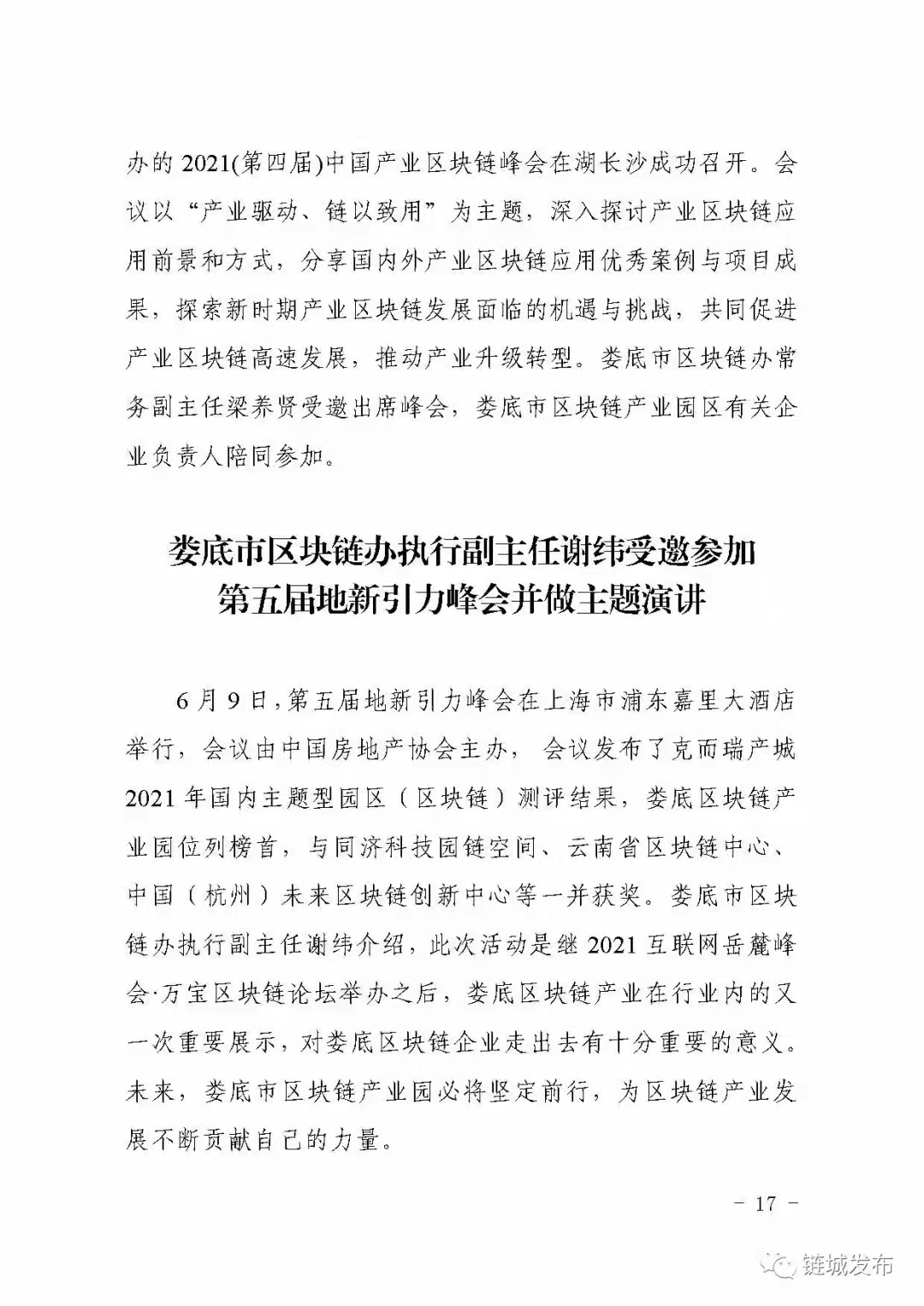 為方便社會各界更好的了解婁底市區(qū)塊鏈產(chǎn)業(yè)發(fā)展動態(tài),婁底市區(qū)塊鏈辦印發(fā)《婁底市區(qū)塊鏈產(chǎn)業(yè)發(fā)展宣傳簡報(2021年第2期)》,以下是宣傳簡報全部內(nèi)容。